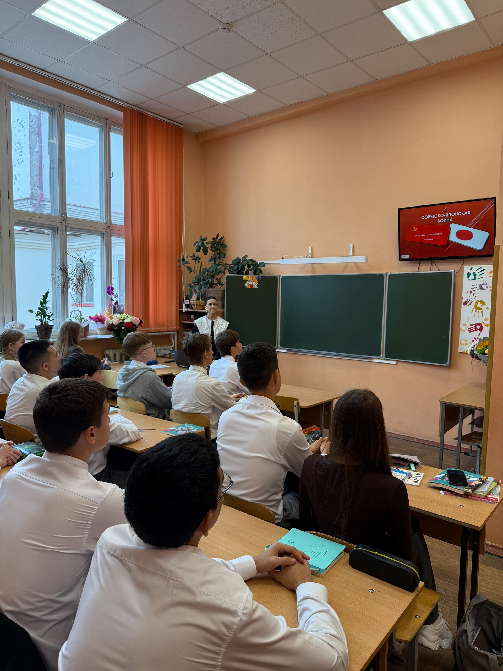 В преддверии Дня Победы над милитаристской Японией – 3 сентября, в школе прошли информативные уроки. Советник директора по воспитанию Саляхова А.В. рассказала ребятам о завершении Второй мировой войны, о роли Советского Союза в разгроме Японии и значении этой победы.