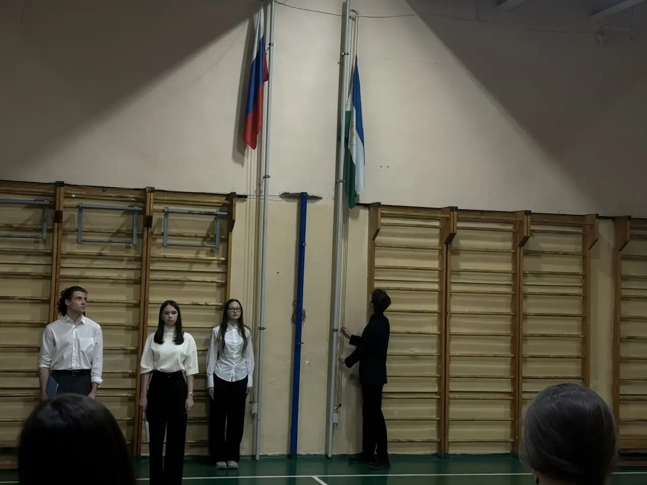 По традиции проводим церемонию поднятия флагов и «Разговоры и важном».