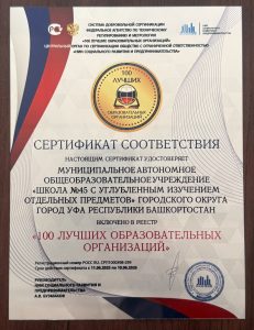 Федеральное Агентство по Техническому Регулированию и Метрологии: «100 Лучших Образовательных Организаций» Наталья Владимировна25 апреля, 202526 апреля, 2025Leave a comment Наша школа по достоинству вошла в число «100 лучших образовательных организаций». Это результат многолетней, плодотворной и качественной работы педагогического коллектива и руководства школы. Поздравляем!