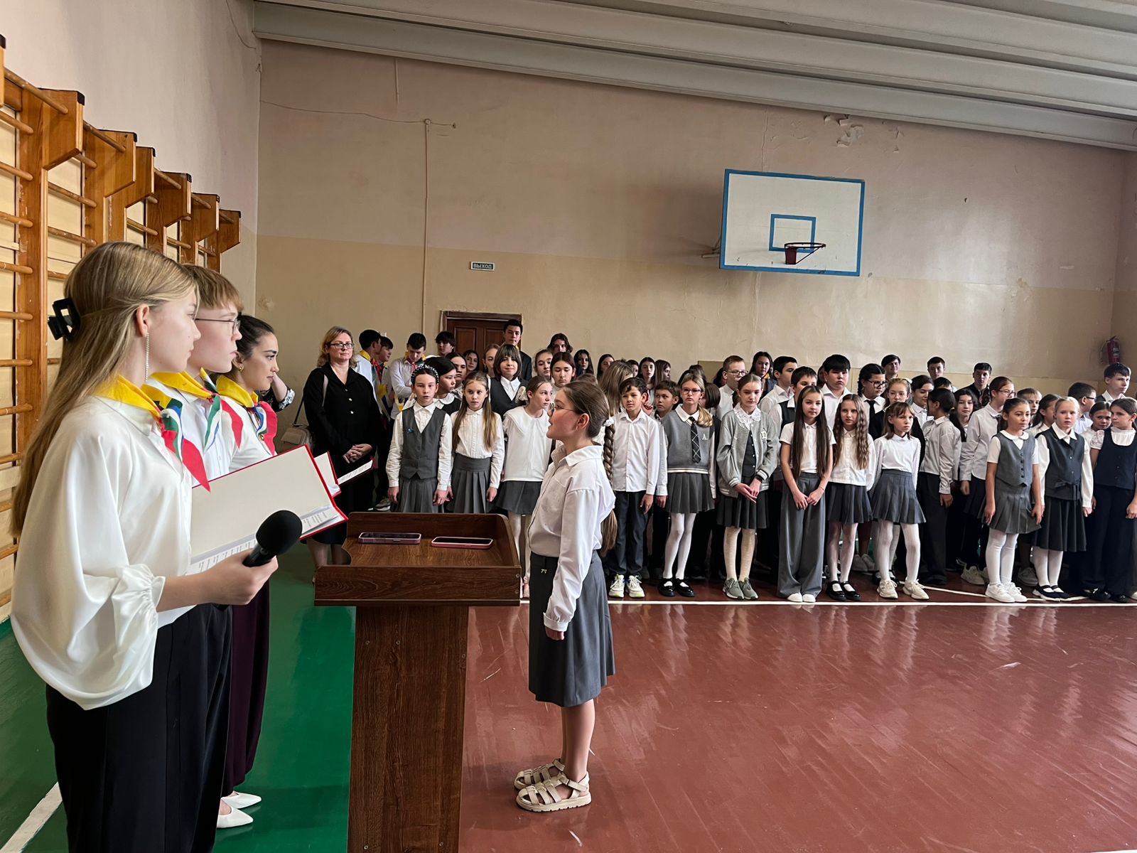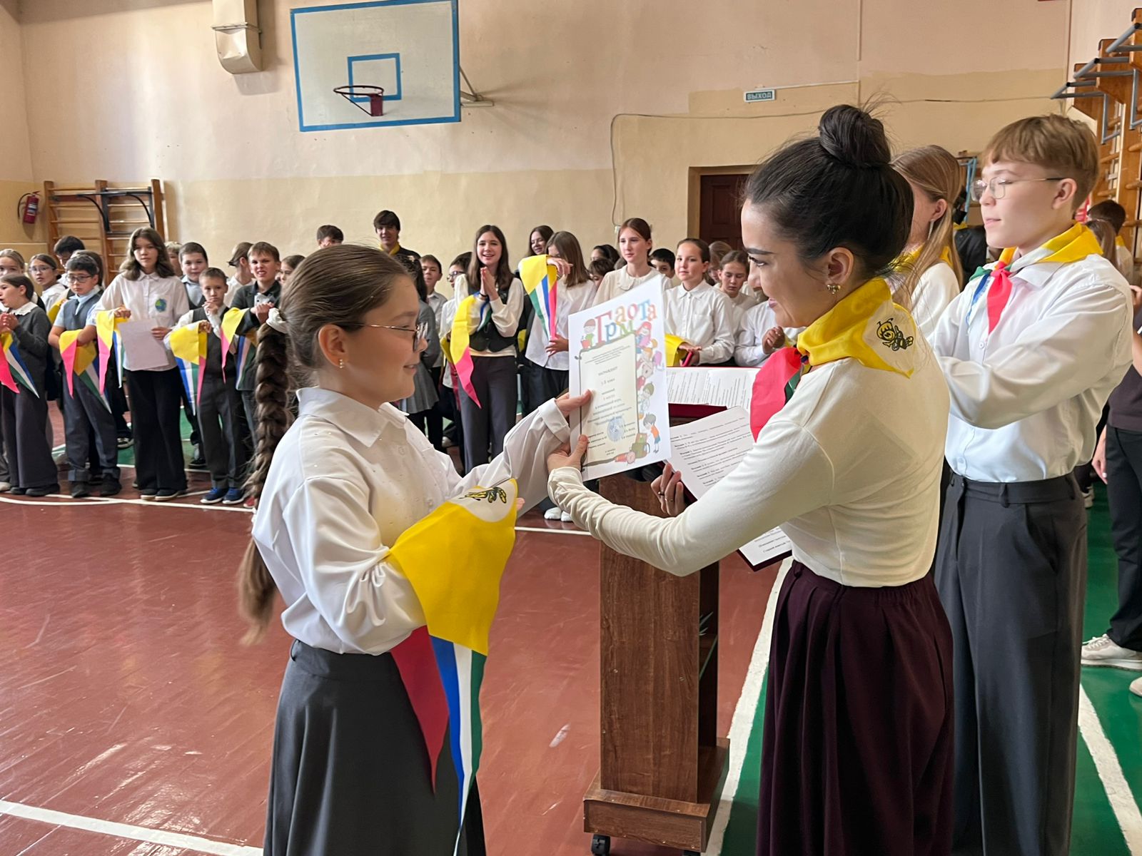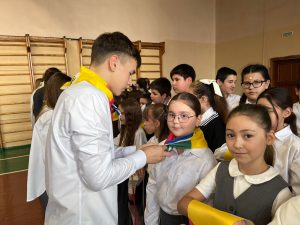Прозвучали гимны Российской Федерации, Республики Башкортостан, пионерской организации МАОУ «Школа №45 с углублённым изучением отдельных предметов». На торжественной линейке, которую с достоинством провели обучающиеся 9 «А» класса, выступили представители администрации школы и приглашённые гости праздника. Советник директора по воспитательной работе МАОУ «Школа № 45 с углублённым изучением отдельных предметов» Саляхова Айгуль Василевна и старшая вожатая Верестникова Ирина Владимировна поздравили юных пионеров, пожелав всем и каждому быть достойными этого почётного звания, уметь работать в команде, стать частью единого целого, уважать интересы своей страны, строить мир будущего, любить своих родных и близких, совершать совместные подвиги и делиться успехами от проделанной работы. Право повязать галстуки было предоставлено старшим вожатым 9 «А» и 9 «Д» классов. В добрый путь к новым горизонтам в страну Знаний, Открытий, Труда!!!