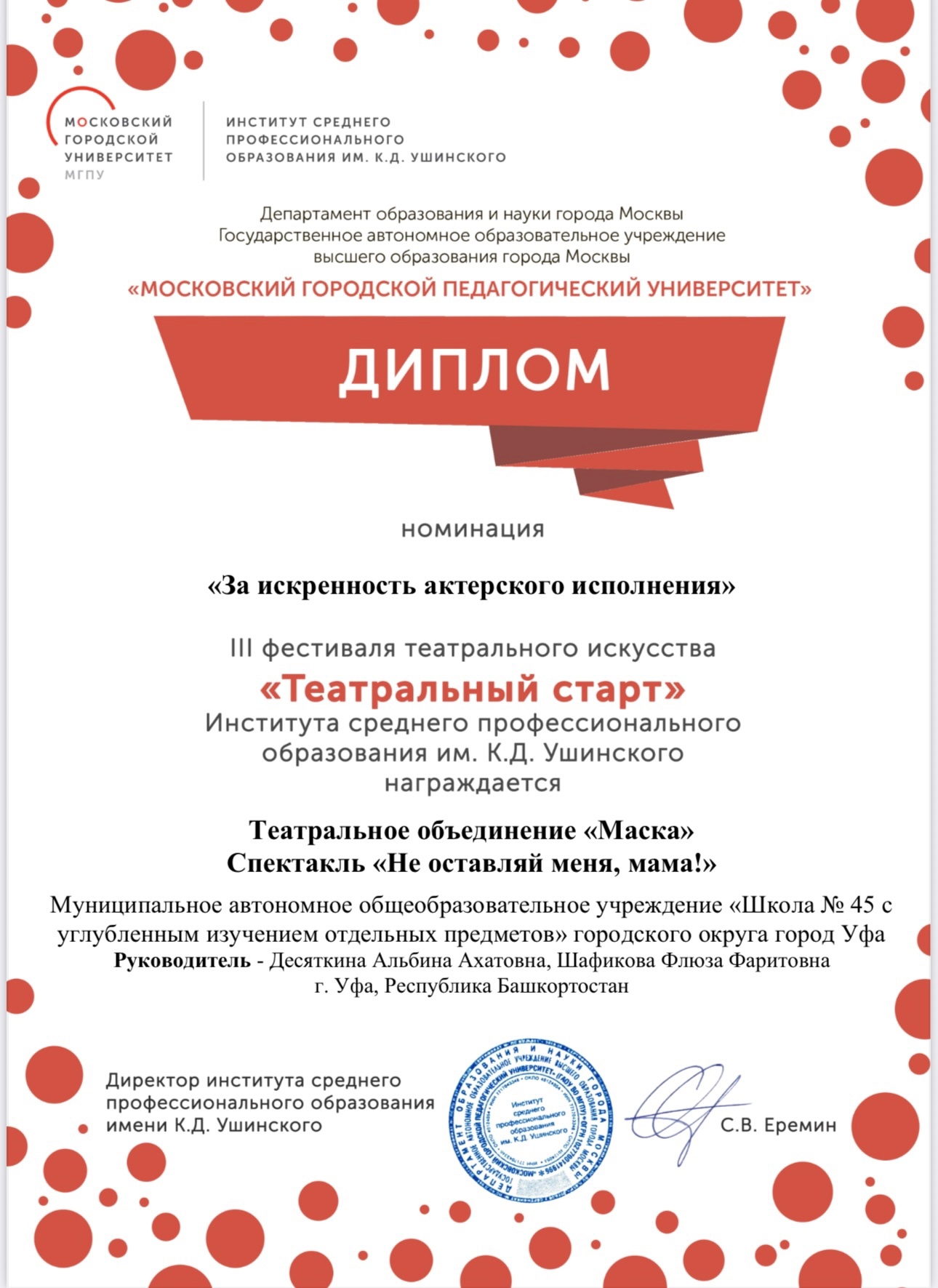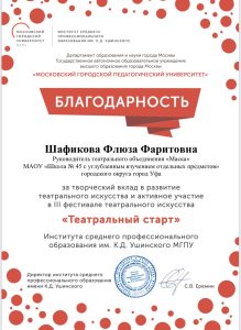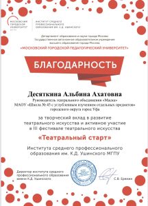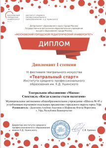 III Фестиваль Театрального Искусства «Театральный старт» Наталья Владимировна27 июня, 202527 июня, 2025Leave a comment И вновь наш школьный театр «Маска» радует своими результатами! Огромный труд и профессионализм руководителей: Шафиковой Ф.Ф. и Десяткиной А.А.